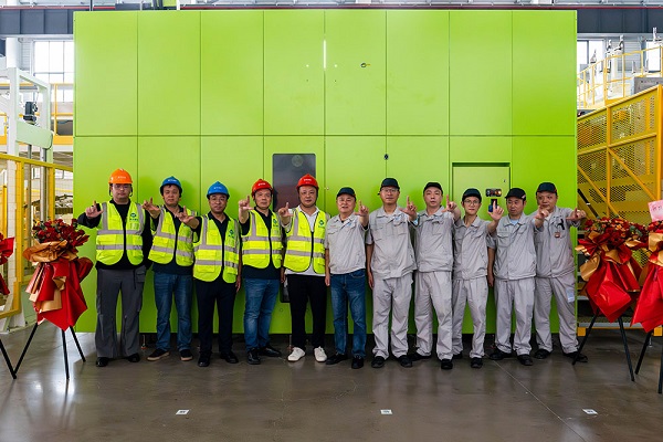 At the commissioning ceremony, Zhang Guangyin, General Manager of Leapmotor’s Resin Production Division, joined Xu Bin, Deputy General Manager of Haitian’s Global Industry Line, Liu Lizhu, Sales Manager of Northern Zhejiang Region, and Hu Haibo, Key Account Service Manager, to jointly launch the production line.