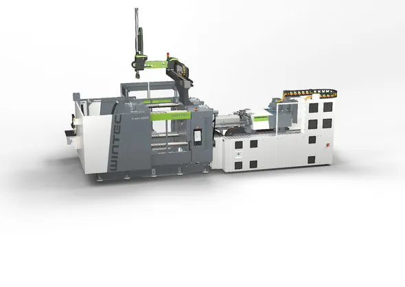The t-win from WINTEC is distinguished by its robust two-platen design. Short-stroke pressure pads enable short cycle times, while a synchronous locking system and servo-hydraulic drive ensure fast and energy-efficient operation. Its high energy efficiency, compact footprint and optimised maintenance access reduce overall operating costs and ensure a fast return on investment.